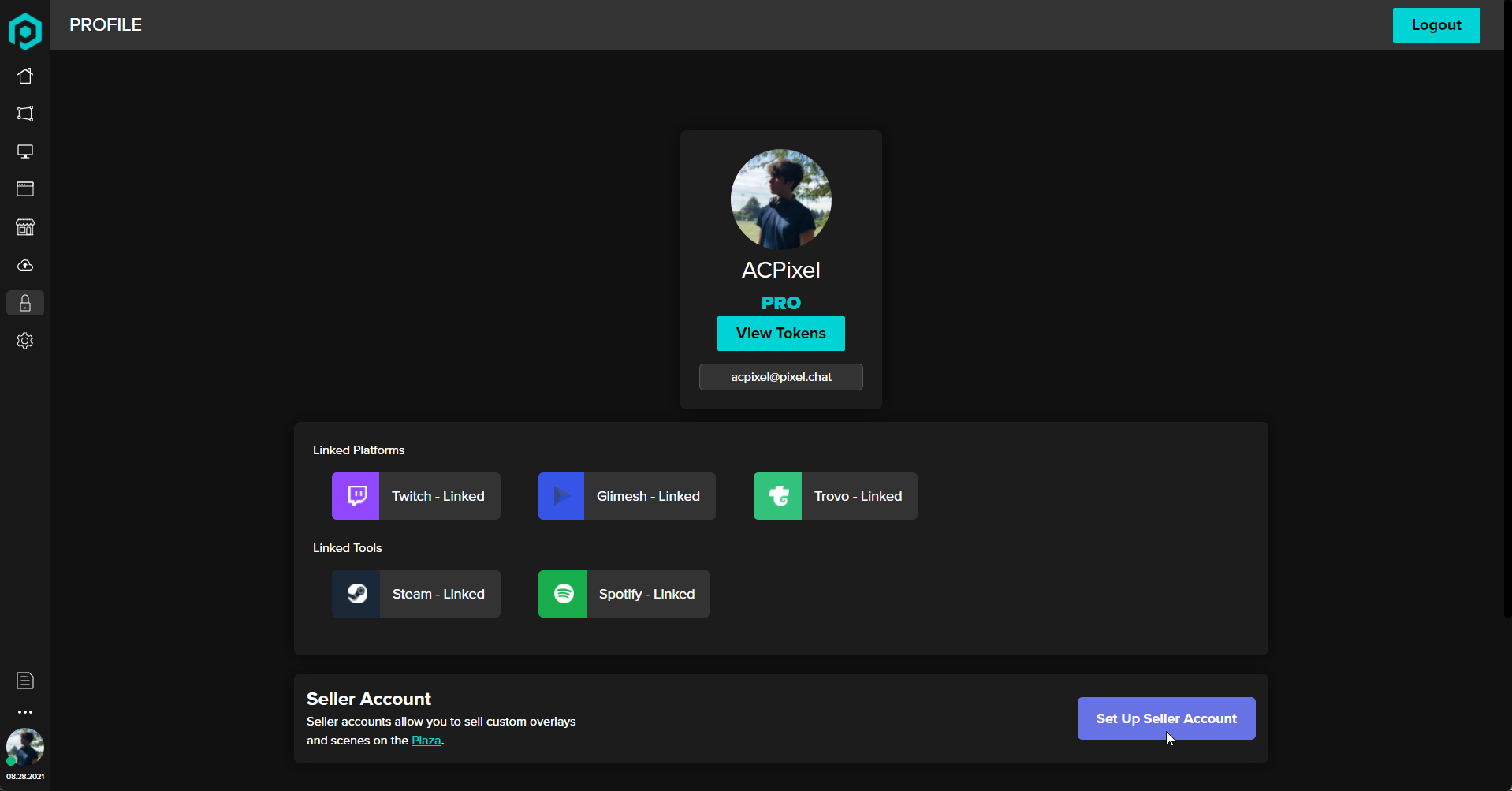 Clicking this button will redirect you to a Stripe page, we use Stripe to process all of our payments as well as payout any of our creators. To continue through the setup Stripe will ask you for several bits of information such as a bank account for sending payouts, and some personal information to confirm your identity. Once you have filled all of this information out, you will be redirected back to the profile page, and the "Set Up Seller Account" button will have switched to a "View Dashboard" button. This dashboard is where you can go to view any sales you have made, as well as your account balance. As for payouts, Pixel Chat has all of the accounts set to payout every week on Friday.